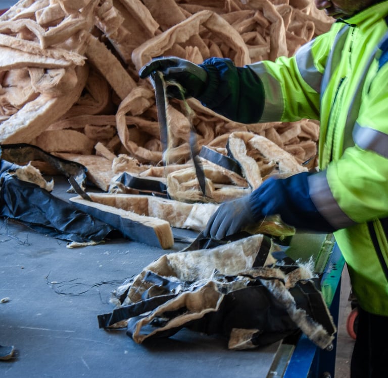 Nous avons choisi de commencer notre mission par la recherche d'une solution au recyclage de la laine de verre car faute d'alternative viable, celle-ci est aujourd'hui trop souvent destinée à l'enfouissement.